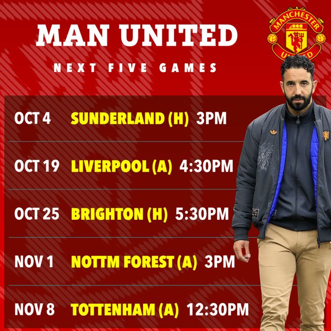 去年10月的国际比赛日之前,曼联在7场联赛输了3场,只赢下2场,吉姆·拉特克里夫爵士和英力士已经开始考虑解雇滕哈格。如果对桑德兰不打好,阿莫林本赛季的开局之差将超过上赛季。