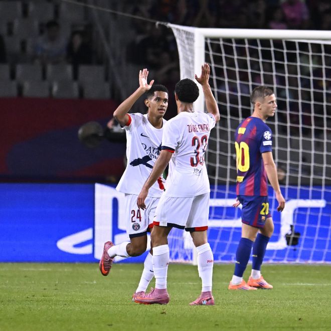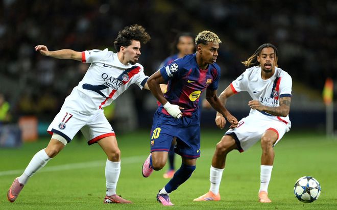 易边再战,大巴黎率先发威,第51分钟巴尔科拉左路在两名防守球员的包夹下,强行杀入巴萨禁区,随后捅射远角,可惜没有踢上力量,被什琴斯尼轻松没收,第61分钟亚马尔右路强行内切,在大禁区线前被放倒,巴萨获得了一个位置绝佳的定位球机会,亚马尔亲自操刀直接放了高射炮。