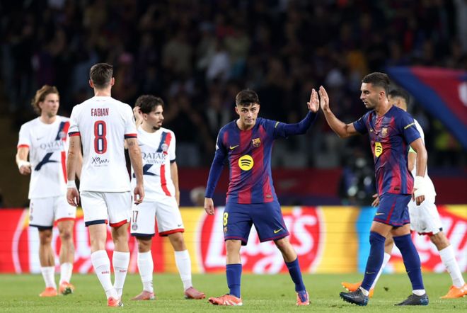 比赛开打之后,亚马尔就率领巴萨给大巴黎的后防施压,第15分钟身价高达2亿欧元的亚马尔送出一脚质量极高的外脚背直塞,费兰得球后顺势过掉巴黎门将,可惜打门被回防的后卫门线解围,不过4分钟之后,巴萨还是在主场率先取得进球,拉什福德左路传中,费兰门前铲射建功,加盟巴萨后连续6场参与进球的曼联太子,也帮助巴萨创造了连续45场比赛有进球的队史纪录。