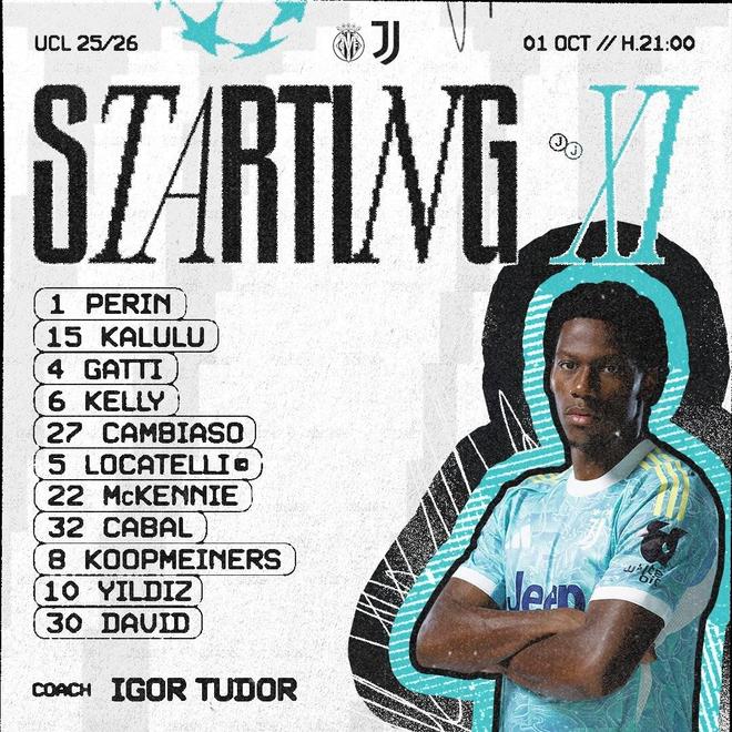 尤文客战比利亚雷亚尔:伊尔迪兹、麦肯尼、乔纳森-戴维首发