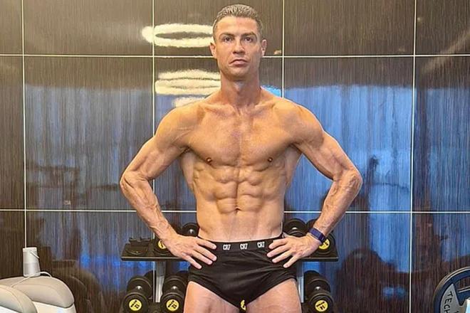 报道称,人们常说,40岁的C罗拥有28岁的身体。最近一张C罗几乎赤裸着在健身房摆出严肃表情和挑衅姿态的照片再次证实,他的体型仍然是体育界的一大谜团。